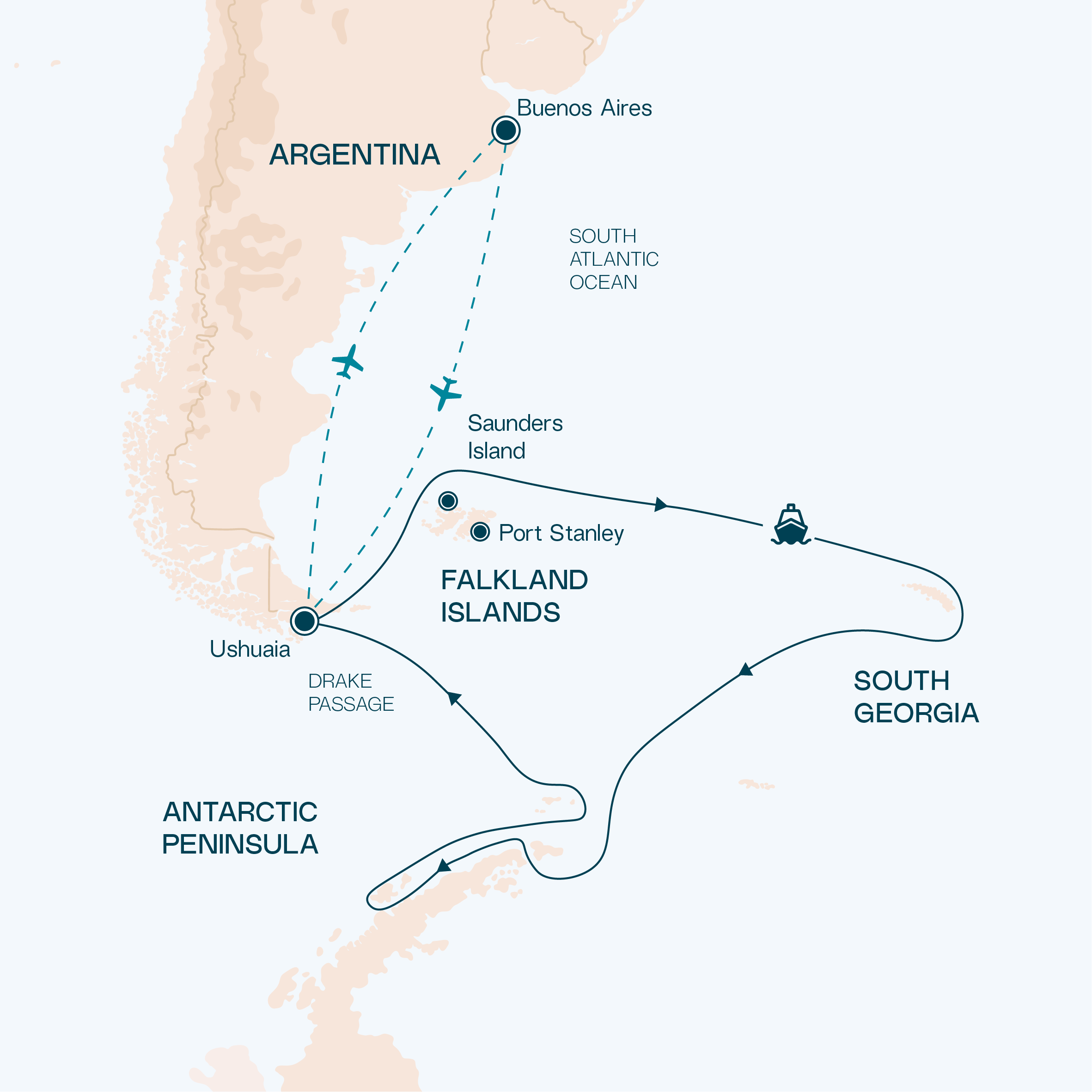 Live out your Antarctica dream on this exceptional voyage aboard our luxury ice-class expedition ship. Your journey to this icy wilderness starts with the notorious two-day Drake Passage sea crossing. Following in the footsteps of legendary explorer Ernest Shackleton, we visit South Georgia. Here you will clamber onto beaches crammed with millions of penguins and take home everlasting memories. Get ready for fabulous photo opportunities of magnificent icebergs as we sail around the Antarctic Peninsula. This immersive cruise is the ultimate Antarctica journey that will make for the trip of a lifetime.
