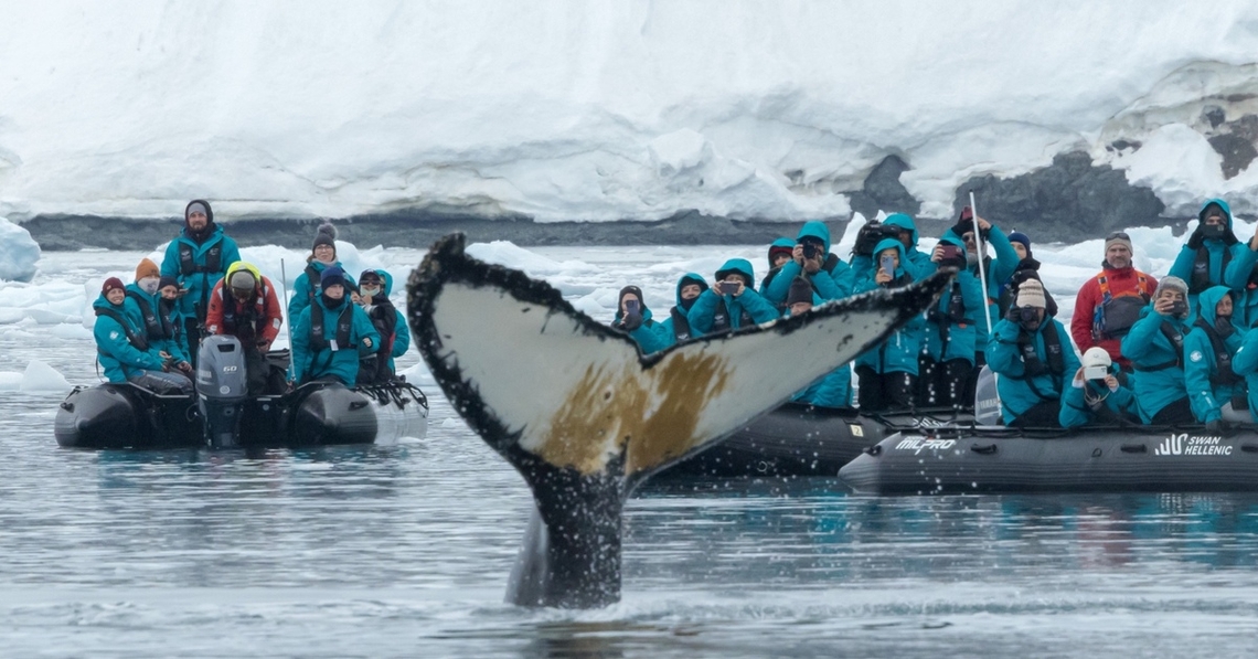Ein spektakuläres Ziel fur Whale Watching, die antarktischen Ozeane sind die Heimat vieler dieser prächtigen Säugetiere, darunter Orcas, Finnwale, antarktische Zwergwale, Südkaper und unsere an häufigsten anzutreffende Art, die Buckelwale. Die meisten Wale wandern hierher, um sich von winzigen, garnelenartigen Krebstieren, den sogenannten Krill, zu ernähren, während andere das ganze Jahr über auf dem Weißen Kontinent bleiben. Dies ist einer der Gründe, warum unsere Zusammenarbeit mit der Meeresfoschungsorganisation Happywhale so erfolgreich ist. Happywhale verfolgt das Ziel, das globale Verständnis und den Schutz von Meeresumgebungen zu fördern, und Swan Hellenic arbeitet im Rahmen unseres Citizen Science Programms mit ihnen zusammen. Unsere Gäste können sich dieser Arbeit als Bürgerwissenschaftler anschließen und so zum globalen Wissen über Walpopulationen, Verhalten und Verbreitung beitragen.