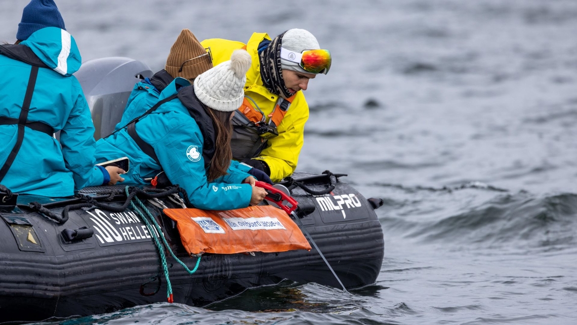Anya: We give recaps on every project we take part in. In the field, we run an activity that’s called “Science Boat” during Zodiac cruises. So our guests participate in real surveys – taking samples of phytoplankton, measuring Secchi depth, water salinity, conductivity and temperature, and listening to whales, seals or drifting brush ice with a hydrophone. On land, we collect photo data on snow algae. Plus, we also arrange workshops in our expedition lab, where the guests have a chance to touch real baleens, whale bones, barnacles on whale skin, and look at phytoplankton, krill or plastic found in a whale’s stomach under a microscope. We combine information with hands-on involvement, helping guests deepen their understanding and appreciation of the environment they’re traveling in. They learn more and retain their knowledge better by actively taking part.