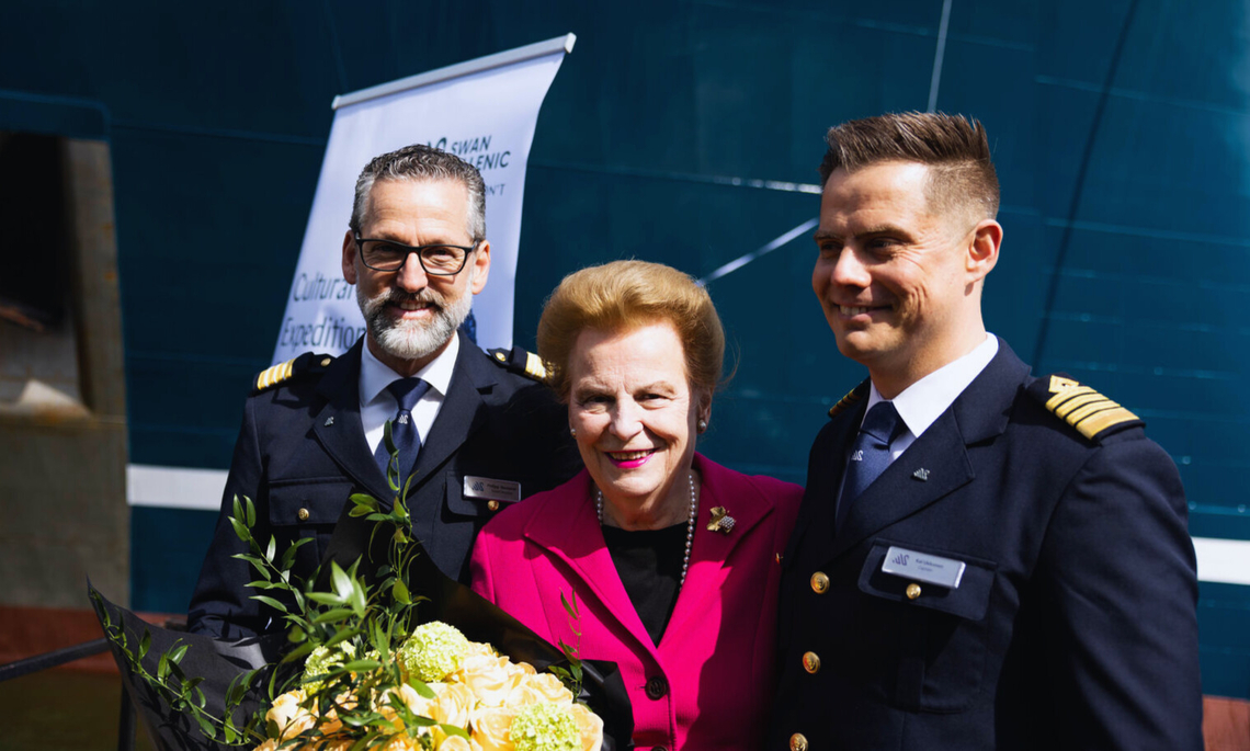 Our elegant new vessel was named by luxury travel visionary Valerie Wilson, who was joined at the ceremony by Swan Hellenic Senior Management, VIP guests, the media, and members of the cruise industry from around the world.