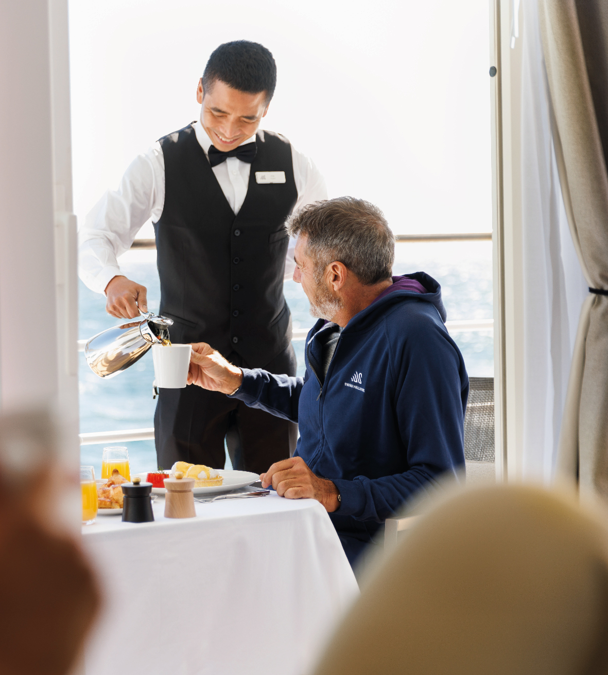 Plus, our carefully curated in-room menu offers a relaxing dining experience in the comfort of your own stateroom